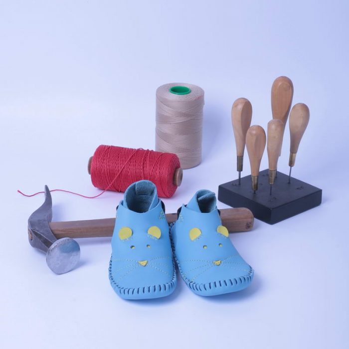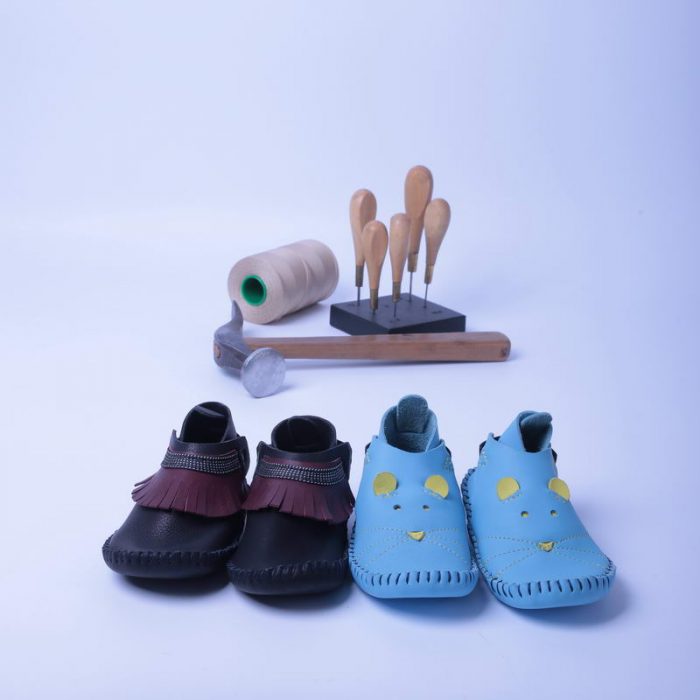 En route pour une journée de fabrication d’une paire de chaussons en cuir souple pour bébés !